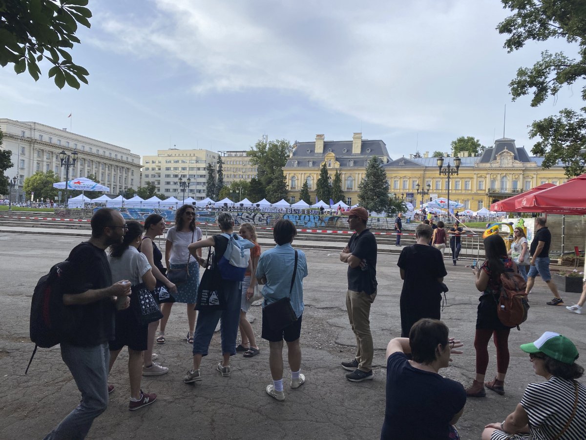 Фокусът на конференцията на КОИ върху ефектите на кризите върху градското пространство и местата на оспорвани наследства, някак органично се свърза с въпросите, които инсталацията на мястото на бившия мавзолей повдига. Това беше и поводът да направим съпътстващо на конференцията събитие - разходка и беседа около инсталацията. От дистанцията на времето и мястото всичко изглеждаше перфектно, до момента в който на място заварихме инсталацията напълно оградена, като част от мерките за сигурност, свързани с провеждането на София Прайд. И в противовес на принципа на инсталацията да скъсява дистанцията с публиките, се оказахме на принудителна дистанция от нея. Градското пространство на София си остава непредвидимо и оспорвано...