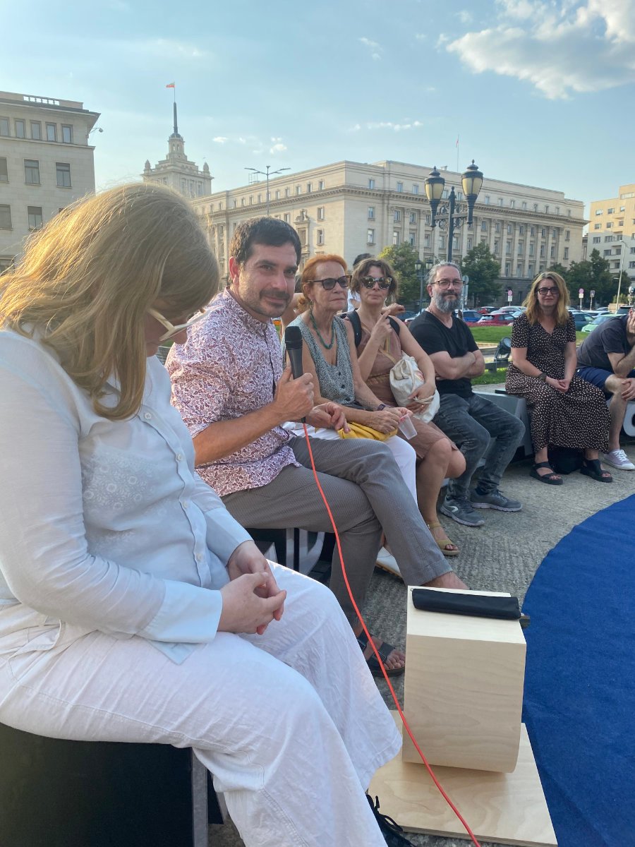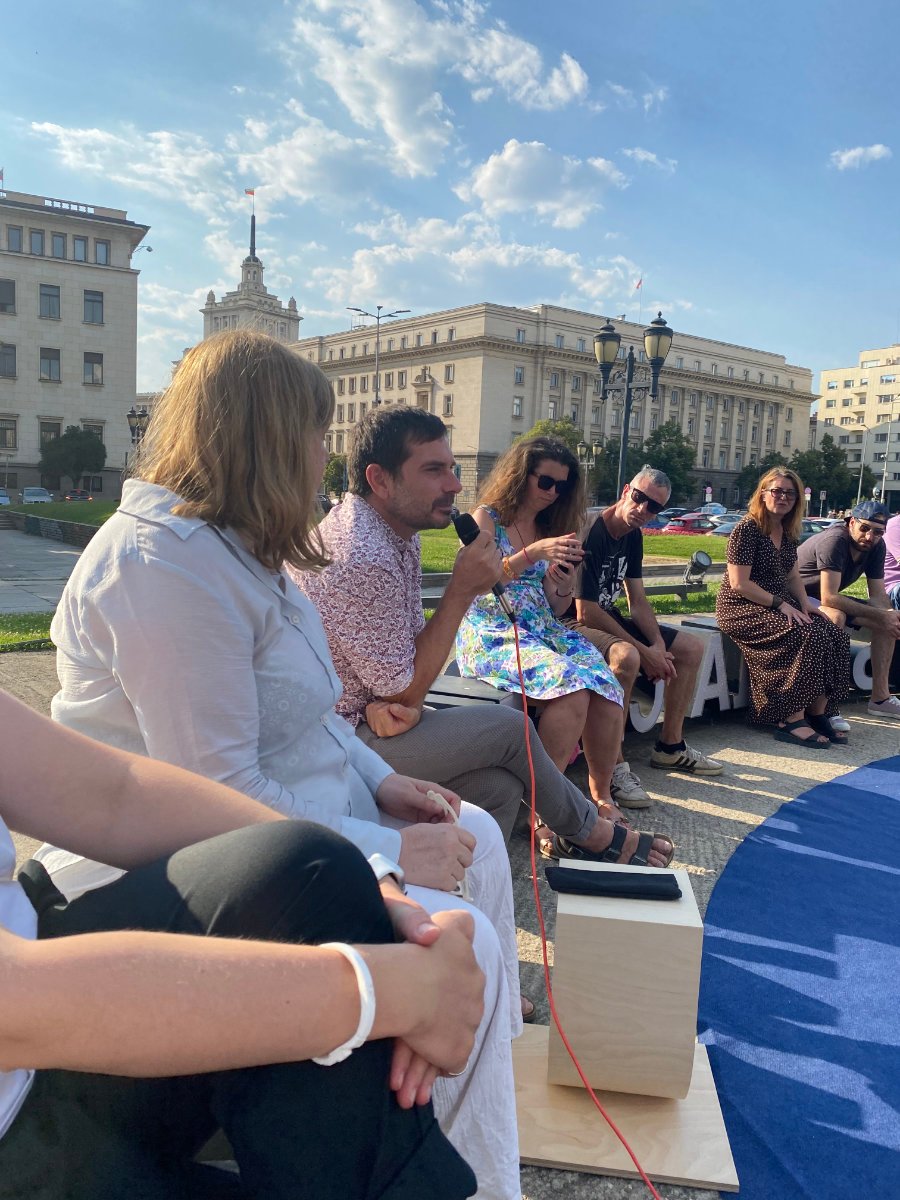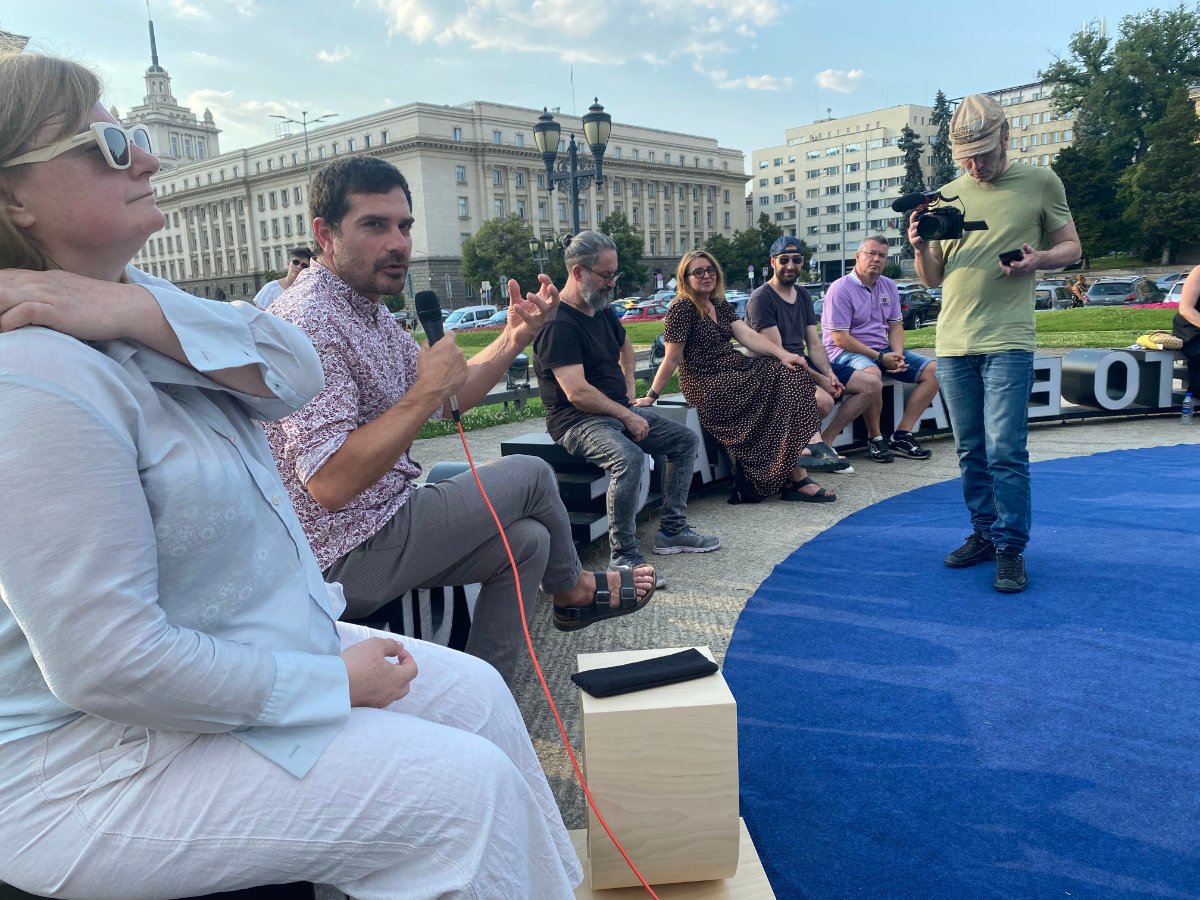 Third conversation in the series “BETWEEN THE PAST THAT IS ABOUT TO HAPPEN AND THE FUTURE THAT HAS ALREADY BEEN – CONVERSATIONS about society in time”, within the framework of the art installation of the same name by Krasimir Terziev. Placed in the heart of the City Garden, it is the visual and conceptual core of a series of conversations that seek to give voice to the deepest social anxieties, contradictions and opportunities for change.
