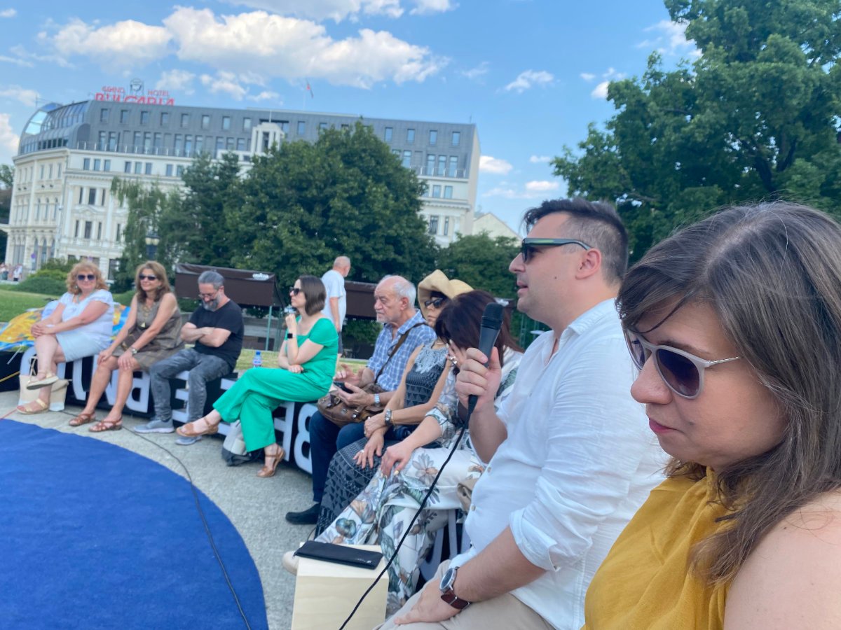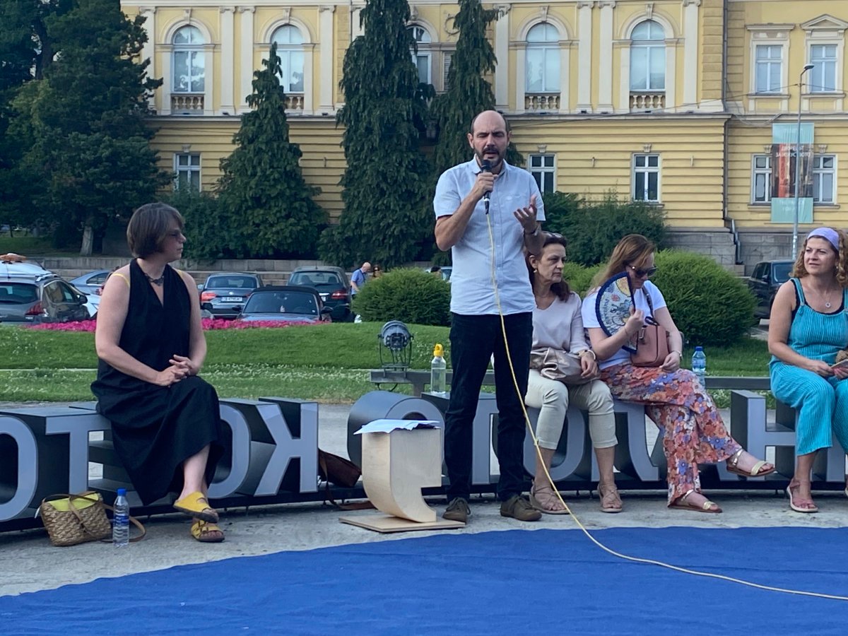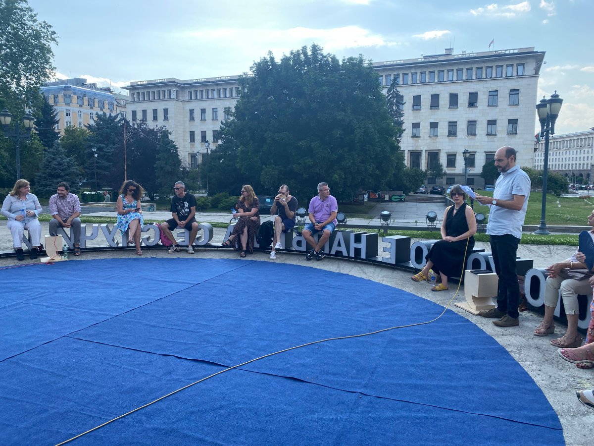 Third conversation in the series “BETWEEN THE PAST THAT IS ABOUT TO HAPPEN AND THE FUTURE THAT HAS ALREADY BEEN – CONVERSATIONS about society in time”, within the framework of the art installation of the same name by Krasimir Terziev. Placed in the heart of the City Garden, it is the visual and conceptual core of a series of conversations that seek to give voice to the deepest social anxieties, contradictions and opportunities for change.