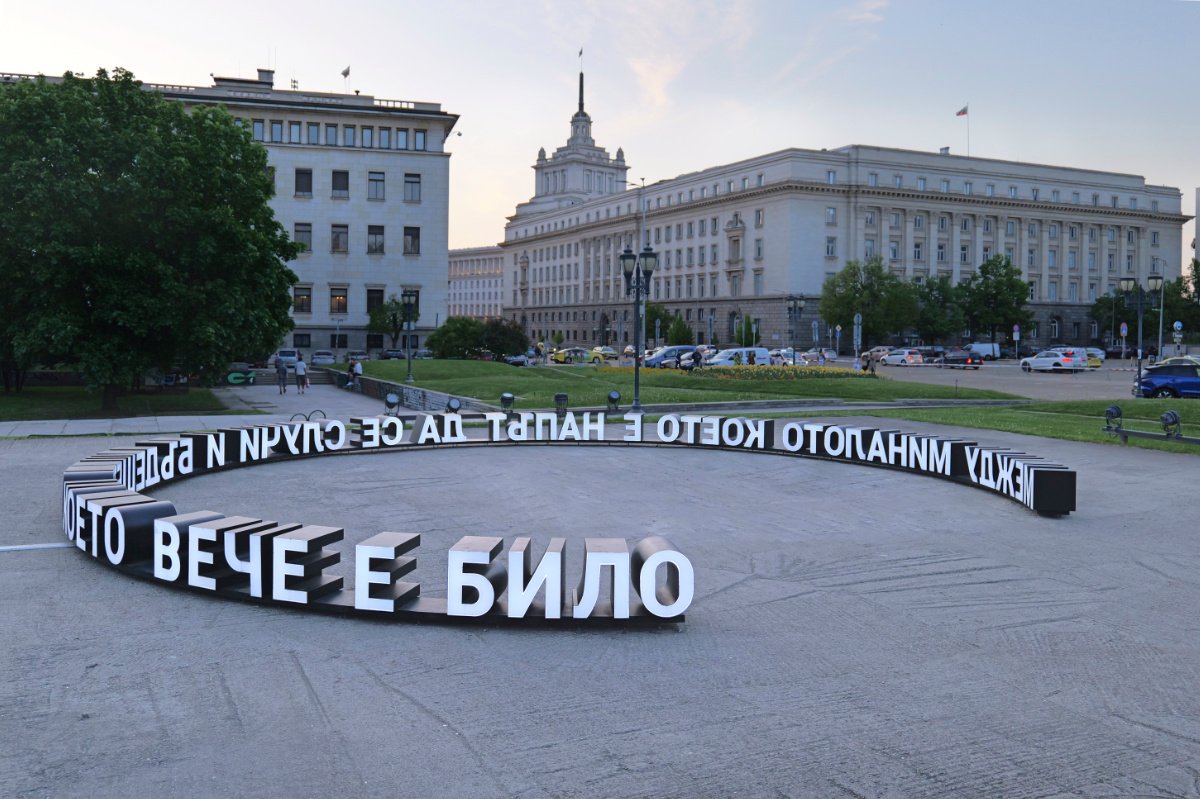 "Between the past that is about to happen and the future that has already been" is an art installation on the site of the former mausoleum of Georgi Dimitrov in the center of Sofia. It is related to the special symbolic significance of this place, which has left its mark on the city. But it is also addressed to visions of the future, in which we are not just the audience of monumental spectacles.